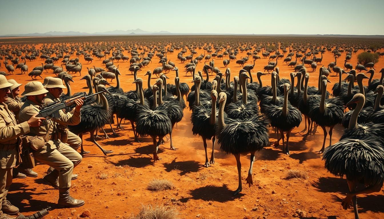 En 1932 ocurrió un evento que desafía toda lógica militar. Mientras el mundo enfrentaba crisis económicas, Australia libraba una batalla peculiar. Granjeros desesperados pidieron ayuda al ejército para controlar una invasión inesperada: miles de emús arrasaban cultivos en el oeste del país.